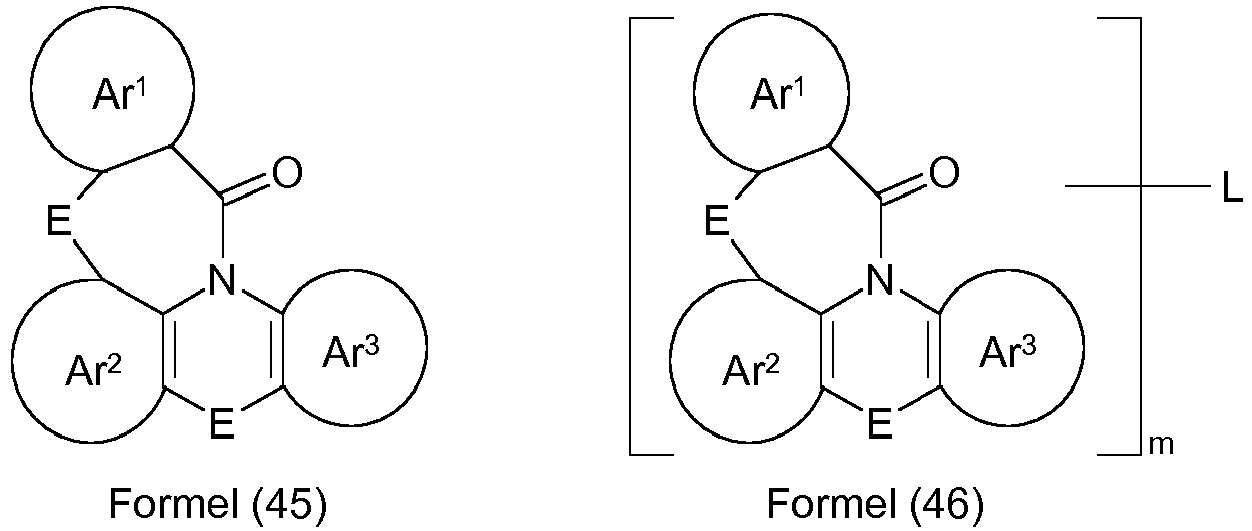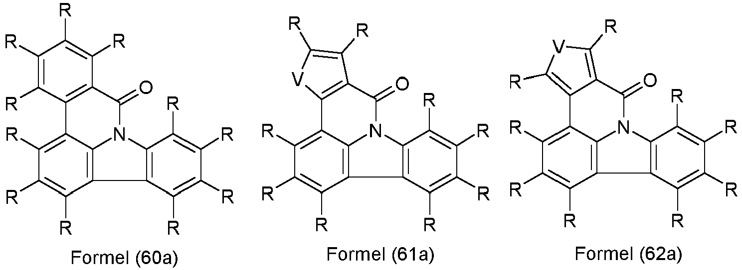 - Iridium and platinum are rare and expensive metals. In order to conserve resources, it would therefore be desirable to be able to avoid the use of these rare metals. Furthermore, such metal complexes sometimes have a lower thermal stability than purely organic compounds, in particular in the case of sublimation, so that the use of purely organic compounds would also be advantageous for this reason, provided they lead to comparably good efficiencies. Furthermore, blue, in particular deep blue phosphorescent iridium or platinum emitters with high efficiency and service life are technically difficult to realize, so that there is also a need for improvement here. Furthermore, there is a need for improvement, in particular with regard to the service life of phosphorescent OLEDs which contain Ir or Pt emitters, if the OLED is operated at a higher temperature, as is necessary for some applications.