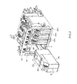 - Container features to interface latches and fluidic ports are also noted.