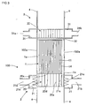 - Acoustic waves generated at the acoustic-wave generation part 7 are transmitted through the transmission tube 5' in the direction of the dashed-dotted arrow in FIG. 2 , and then are transmitted through the looped tube 4' in the direction of the dashed line arrow in FIG. 2 . Then, the acoustic waves reach the heat/acoustic wave conversion unit 100, and travel in each cell from the upper side in FIG. 2 of the heat/acoustic wave conversion component 1. At this time, due to heat transport by acoustic waves, the system can have a state where the end on the high-temperature side heat exchanger 2 side has a relatively higher in temperature than the end on the low-temperature side heat exchanger 3 side.