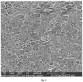 - a plurality of micropores are formed at and/or around the first domains that have an average cross-sectional dimension of from about 0.5 to about 30 micrometers, and a plurality of nanopores are formed at and/or around the second domains that have an average cross-sectional dimension of from about 50 to about 500 nanometers.