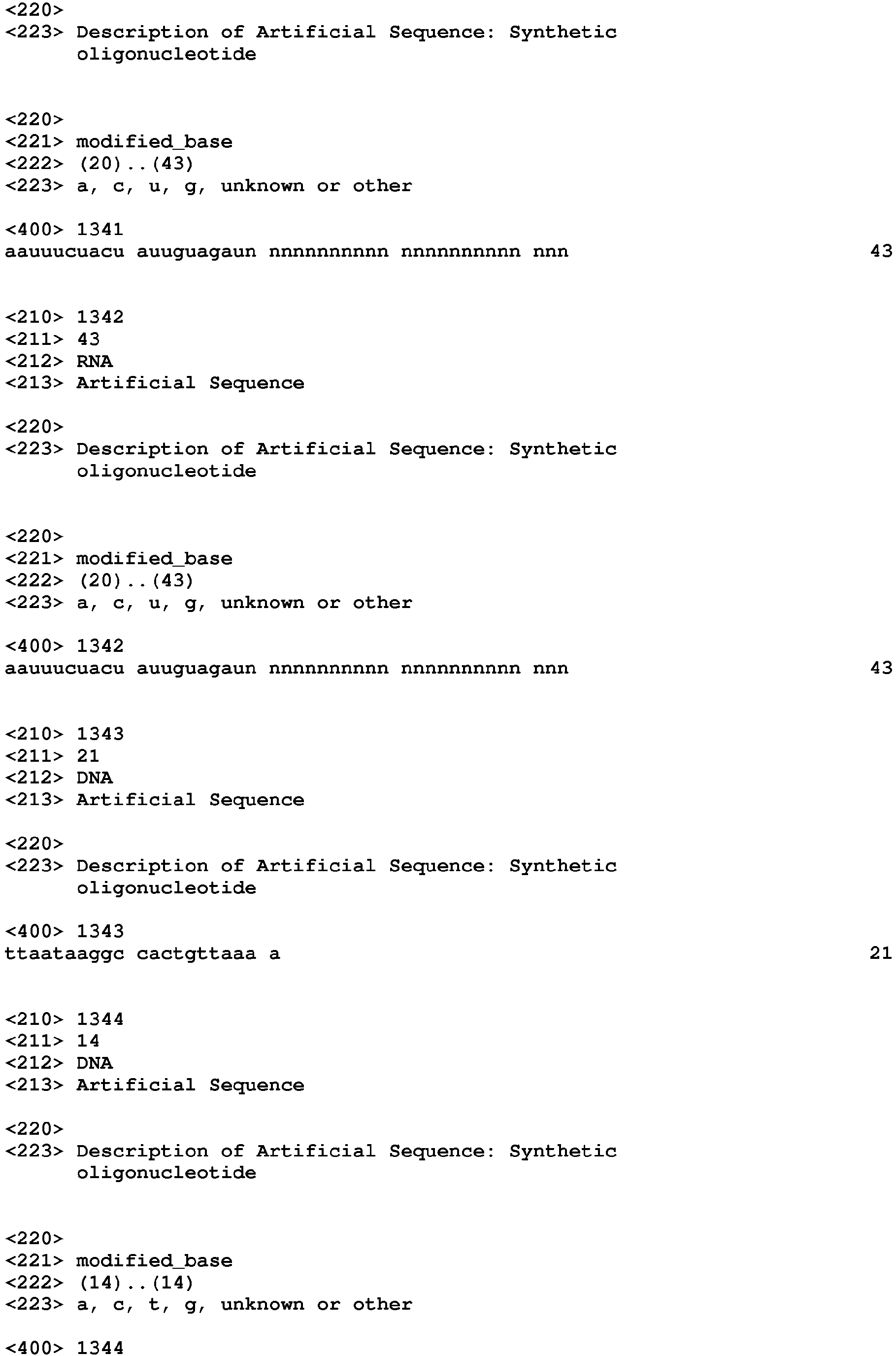 - the one nucleic acid component is a mature crRNA or guide RNA, wherein the mature crRNA or guide RNA comprises a spacer sequence (or guide sequence) and a direct repeat sequence or derivatives thereof.