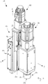 - the carrier 16 serves as a holder for a drive 18 for linearly driving a slide 20 in a direction parallel to the z-axis, for example by means of a spindle drive 22.