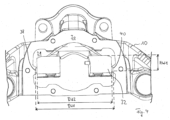- the caliper can be designed to be closed in the section facing away from the brake disc (rear), which has mechanical, particularly strength, advantages.