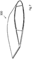 - the composite solution allows trailing edges of the vane 300 thin design up to zero thickness. This allows better to optimize the shape of the profile of the vane 300 against Karman phenomenon.