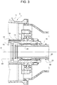 - the casing 3 is preferably constituted by several pieces fixed to one another, and houses the transmission 4 and two shafts 9,10, which are supported by the casing 3 in known manner by means of rolling bearings.