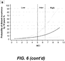 - the disclosure is based in part on the discovery that (a) a two category scheme (high risk, low risk) can be effectively utilized in BCI analysis to avoid the uncertainty of the prior art intermediate risk classification; (b) a linear BCI model (BCI-L) has superior prognostic ability for risk of recurrence than a cubic model (BCI-C); and (c) the above discoveries allow for a simpler and more accurate application of BCI to provide prognostic information, such as cancer recurrence, and predictive information, such as responsiveness to certain therapies, that can be used for selection of therapeutic options.