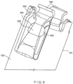 - the arms of the clip 102 are spread at a wider and wider angle and the tabs 326 are received between portions of the arms which, in the resting position are positioned increasingly closer together.