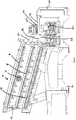 - the transfer conveyor and the first and second delivery chutes may be mounted on a carriage slidably mounted on the chassis for movement between a first position, wherein the first chute is aligned with the discharge end of the intermediate deck, and the second chute is aligned with the discharge end of the upper deck, and a second position, wherein the first chute is spaced from the discharge end of the intermediate deck and the second chute is spaced from the discharge end of the upper deck, to permit access to the discharge ends of the lower, intermediate and upper decks for maintenance when the carriage is in its second position.