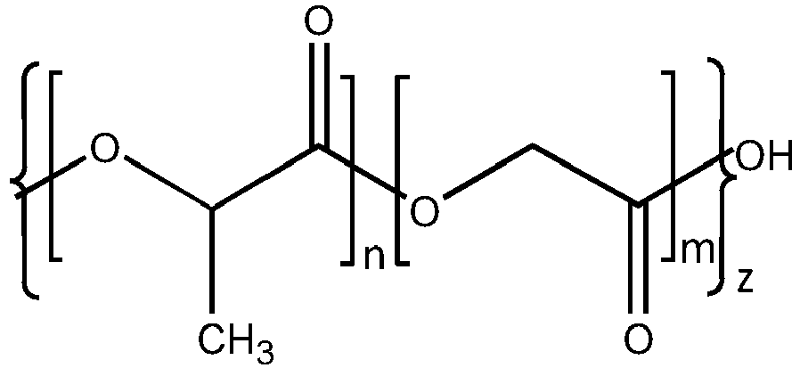 - the ratio of lactic to glycolic acid monomers in the polymer can be about 50/50 weight percentage.