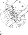 - FIGS. 5 and 6 is a guide element 41 mit a stop edge 43, which serves as a leading edge for the above-described radial positioning of the conductors 28, 29 and an inclination angle ⁇ relative to a through the working surface 19 of the sonotrode 16 (16).