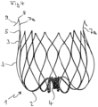 - the implant Upon release from the catheter, the implant assumes the expanded shape imparted by an annealing process, i. H. the basket shape with the anchor elements protruding beyond it.