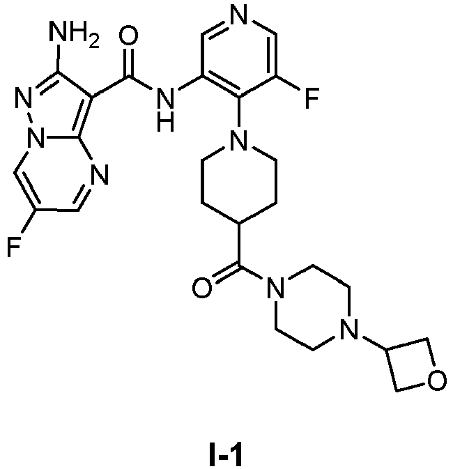 - QAYHKBLKSXWOEO-UHFFFAOYSA-N Nc1n[n](cc(cn2)F)c2c1C(Nc(cncc1F)c1N(CC1)CCC1C(N(CC1)CCN1C1COC1)=O)=O Chemical compound Nc1n[n](cc(cn2)F)c2c1C(Nc(cncc1F)c1N(CC1)CCC1C(N(CC1)CCN1C1COC1)=O)=O QAYHKBLKSXWOEO-UHFFFAOYSA-N 0.000 description 2