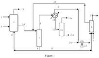 - CN 101293818 shows a flowsheet wherein the each reactor has a distillation unit wherein unreacted olefin is removed. In order to efficiently remove the olefin from the first reactor effluent, this distillation involves a substantial capital investment.