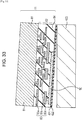 - the laminated substrate 13 includes a pixel array unit 33 in which pixels 32 are arranged in a two-dimensional array form, a vertical driving circuit 34, column signal processing circuits 35, a horizontal driving circuit 36, an output circuit 37, a control circuit 38, and an input/output terminal 39.