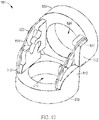 - Cutouts 942, 950 may be difficult to manufacture, in particular, if disc 920 is manufactured by a molding process, because it is difficult to form the cutouts 942, 950 with mold surfaces and then subsequently withdraw the mold surfaces from cutouts 942, 950 due to the shape of cutouts 942, 950 relative to adjacent components of discs 910, 920, particularly when teeth 912, 914 and pins 922, 924, 926 are located radially inward of bearing projections, such as in the exemplary embodiment of FIG. 5 .