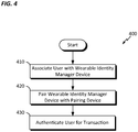 - the disclosure provides a method to facilitate transactions, which includes determining an association status between a user and a wearable identity manager device based on whether the wearable identity manager device is worn. The method further includes pairing the wearable identity manager device with a pairing device, and transmitting authentication data to the pairing device based on the association status to facilitate a user authentication via the pairing device.