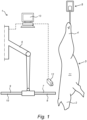 - Figure 1 shows an automatic work station 1 for cutting the head 2 of a slaughtered animal's carcass 3 that is hanging on his hind legs 4 to an overhead transport system 5.