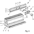 - the base body 10 has at its opposite edge sides in the longitudinal or displacement direction of the fitting part 8 extending edge regions 14, 15. This is a first edge region 14, which is located in the assembled state of the fitting part 8 in the first groove portion 16 of the C-shaped groove, and a second edge region 15 which is in the mounted state in the second groove portion 17 of the groove 7. In the mounted state, the first edge region 14 engages behind the groove limb 18 of the first groove section 16, while the second edge region 15 engages behind the groove limb 19 of the second groove section 17.