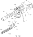- the handle 111 is used to rotate the barrel 110 about the long axis of the barrel and through an angular displacement of about ⁇ 60 degrees so as to enable the rear end of the barrel 110 to be quickly engaged in or disengaged from a corresponding barrel attachment receptacle (not illustrated) in the receiver 102 of the gun 100.