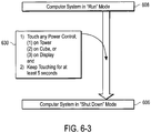 - the circuit 233 sends a signal which causes the computer to enter a reduced power mode (e.g., "sleep"). If the user presses or touches the button 236 for an extended period of time (e.g., more than three seconds), then the circuit 233 sends a signal which causes the computer to shut down (turn off).
