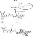 - the phthalocyanine IRDye700DX (IR700), when conjugated to a specific binding agent (e.g., antibody, antibody fragment, hapten, protein, nucleic acid molecule, functional nucleic acid, and the like) is used to label target agents via binding between the specific binding agent and the target.