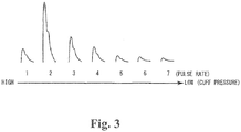 - Fig. 3 is a chart illustrating the state of the pulse waves accompanying the process of blood pressure measurement.