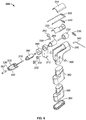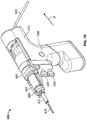 - the device also includes an axial drive shaft extending through a region of the housing between the proximal and distal ends; a first drive element coupled to a region of the axial drive shaft; a rotational drive shaft extending through a region of the housing between the proximal and distal ends; a second drive element coupled to a region of the rotational drive shaft; a coupler interchangeably connected to a working tool and the rotational drive shaft, the coupler extends beyond the engagement portion of the housing; a transducer; and an electronics package.
