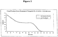 - Example 17 -Particle Size Data for final packed product from Example 3-Sympatec Sympatec Data D10 D50 D90 % ⁇ 4.5 microns "Fine" Feed for Example 3 Target - 6.3% +/-0.3% 9.0 63 129 5.5 Target - 6.0% +/-0.3% 10.0 68 132 5.1 Target - 5.5% +/-0.3% 11 70 133 4.7 "Coarse” Feed for Example 3 Target - 6.3 +/- 0.3% 7.8 66 135 6.2 Target-6.0 +/- 0.3% 7.9 69 137 6.1 Target-5.5 +/- 0.3% 10.0 72 139 5.3