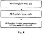 - any force associated with the linkage mechanism can used as a characteristic force to be directly sensored and used to determine the closing and opening time point.