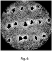 - the present invention fulfills the needs described above by providing novel soluble fibrous structures according to claim 1 wherein at least one of the filaments comprises one or more filament-forming materials and one or more active agents that are releasable from the filament when exposed to conditions of intended use, the soluble fibrous structure further comprises one or more apertures such that the soluble fibrous structure exhibits a Basis Weight Index Ratio of less than 1 as measured according to the Aperture Parameter Test Method; and wherein two or more of the apertures are spaced apart from one another at a distance of from 0.2 mm to 100 mm.