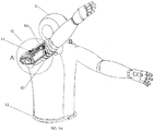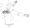 - the harness 12 may include a shoulder bracket and/or frame with a fixed end disposed above or adjacent to the user's shoulder to which other components of the system 10 may be coupled, e.g., to provide the arm support 14, which pivots about one or more axes relative to the shoulder bracket, similar to the systems in these publications.