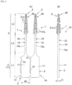 - the soft portion has a plurality of protrusions that are formed to protrude in directions crossing an axial direction of the core portion, and a longitudinal distance (e.g., a distance Lx in FIG. 9(b) ) between the soft front end and a junction front end (e.g., a junction front end 211 in FIG. 9(b) ) as a frontmost end of junction between the soft portion and at least one of the protrusions (e.g., a protrusion 21a in FIG. 9(b) ) is preferably equal to or less than a length between the core front end and the soft front end (e.g., a length Lp in FIG. 9(b) ).