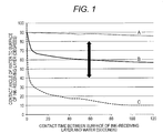 - FIG. 1 exemplarily illustrates the change over time of a contact angle of water to a surface of an ink-receiving layer for a recording medium according to the present invention and conventional recording media.