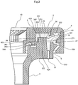 - the annular protrusion 252 encloses the center plate 4 placed in the annular groove 24 and abuts against a below-mentioned annular lip 43 of the center plate 4 .