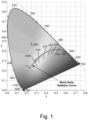 - Fig. 1 illustrates the black body temperature curve (e.g., color map) according to Plank's law.
