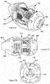 - the three conduits 121 are parallel to air channels 120, they are shorter and lead to a common longitudinal air passage 127 that extends distally to a distal air outlet 128. Due to the three dimensional symmetry of the body 112, there are nine air channels 120, nine air conduits 121, nine radial air outlets 124, three longitudinal air passages 127, and three distal air outlets 128 per body 112. As shown by the arrows in Fig. 5 , in use pressurized air enters the air inlet 180 of the proximal end cap 104 and passes through the longitudinal hole 116, air channels 120, air conduits 121, and longitudinal air passages 127 before exiting the radial air outlets 124 and distal air outlets 128.