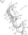 - At least one joint 23 (designed here as a film joint) is provided, which forms a pivot axis S for a pivoting movement of the bow-shaped section 10 of the fastening strip 6.