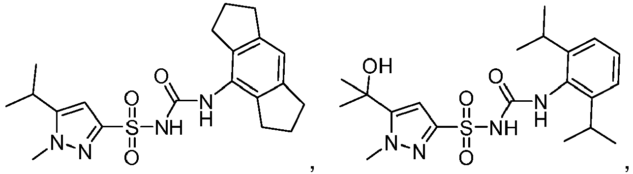 - MTOUOUSKXWSTAX-UHFFFAOYSA-N CC(C)[n](cc1)nc1S(NC(Nc1c(CCC2)c2cc2c1CCC2)=O)(=O)=O Chemical compound CC(C)[n](cc1)nc1S(NC(Nc1c(CCC2)c2cc2c1CCC2)=O)(=O)=O MTOUOUSKXWSTAX-UHFFFAOYSA-N 0.000 description 1