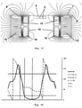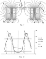 - this non-homogeneity of the magnetization of a horseshoe magnet occurs because the magnetization of two strands of the magnet that are clearly separated from one another by a free space are different. Even with a horseshoe magnet, the magnetization is homogeneous within the respective strand (within the respective solid section). For the premagnetization magnet, it is required that the magnetization within the respective solid is not homogeneous.