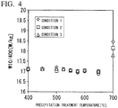 - FIG. 2 a relationship between the precipitation treatment temperature (Cu precipitation treatment temperature) in Cu precipitation annealing and a tensile strength TS, is illustrated, and in FIG. 3 , a relationship between the precipitation treatment temperature and the fatigue strength FS is illustrated.
