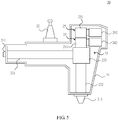 - the laser cladding tool head 20 further comprises: a shell body 21, a shank portion 22 , and a laser module 23, wherein the shank portion 22 is disposed on a top of the shell body 21, and is detachably combined with a tool holder chuck 50 of the above-mentioned hybrid CNC machining center 100; and the laser module 23 includes a laser input portion 231, a laser output portion 232, and a spectroscopic assembly 233, wherein the laser input portion 231 is horizontally disposed on a side surface of the spectroscopic assembly 233, and the laser output portion 232 is perpendicularly disposed on a bottom surface of the spectroscopic assembly 233.