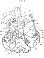- the floor member of the small-sized hydraulic excavator has a narrow space surrounded by the engine, an oil reservoir tank and the front device. Therefore, the operating pedal provided in the front position of the floor member is configured to be capable of being folded in such a manner as not to occupy a space at non-use (Patent Document 1).
