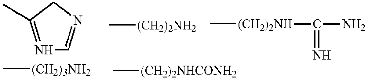 - the aliphatic group is a linear or branched C 1 -C 4 alkyl group; a linear or branched C 1 -C 4 hydroxyalkyl group; a linear or branched C 1 -C 4 aminoalkyl group; a linear or branched (C 1 -C 4 alkyl)thio(C 1 -C 4 )alkyl group; a linear or branched C 2 -C 4 carboxyalkyl group; a linear or branched ureidoalkyl group, a linear or branched guanidinoalkyl group, a linear or branched imidazoloalkyl group or a linear or branched indolylalkyl group, the alkyl portions of these last four groups comprising from one to four carbon atoms.