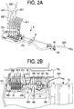 - the output line 2031 can be set within an output guide 18 (See Fig. 3A ) formed in an outer wall that defines a second shallow pump tray indent 10d in the upper surface of the housing in which the pump 40 is located.