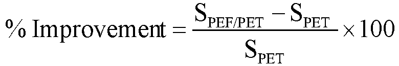 - Another avenue sought is to use a 100% poly(ethylene furanoate) (PEF) bottle as a 100% bio-renewable replacement for PET, which has better barrier performance than a 100% PET bottle, but is costly due to raw material availability and also due to processing/recycling, resulting from different material properties of PEF as compared to PET.