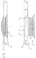 - the fastened insert 6 (respective lower drawing in Fig. 2 to Fig. 6 ), after inserting it (respective upper drawing in Fig. 2 to Fig. 6 ) into the damage 2, bridges and fills the damage 2 in a shape so that the damage 2 is reconditioned as, in particular, mechanically and aerodynamically required.