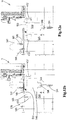 - the vessel 1 is equipped with a suspended riser transfer device including a support frame 64 (see figure 7b ), possibly embodied as a skid cart, and a pair of associated rails 65 which extend in longitudinal direction of the moonpool (see figure 7c ) allowing to displace the support frame 64 in longitudinal direction of the moonpool while supporting a riser string of interconnected riser (and possibly a BOP attached to the lower end of the riser string) lowered into the sea, generally between the rear moonpool area and the front moonpool area, so as to pass underneath the base of the mast.
