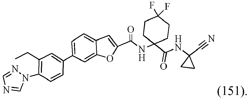 - BERYGSPCWZEICY-UHFFFAOYSA-N CCC(CCF)(C(NC1(CC1)C#N)=O)NC(c1cc(ccc(-c2cc3ncc[n]3cc2)c2)c2[o]1)=O Chemical compound CCC(CCF)(C(NC1(CC1)C#N)=O)NC(c1cc(ccc(-c2cc3ncc[n]3cc2)c2)c2[o]1)=O BERYGSPCWZEICY-UHFFFAOYSA-N 0.000 description 1