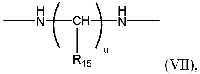 - Acrylamides include compounds having a formula: wherein R" is a moiety having a structure: a moiety having a structure: a moiety having a structure: or a substituted or unsubstituted triazinane ring or a piperizine ring, wherein R 15 is selected from hydrogen or hydroxyl, preferably R 15 is hydrogen; u is an integer from 1 to 2, preferably 1, and v, x and y are independently integers of 1 to 10; R 16 and R 17 are independently chosen from hydrogen and carbonyl moiety with the proviso that when R 16 and R 17 are carbonyl moieties, the carbonyl moieties form a covalent bond with the carbons of the vinyl groups of formula (VI) displacing a hydrogen to form the covalent bond with the carbons of the vinyl groups and form a five membered heterocyclic ring having a structure: