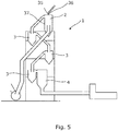 - Fig. 1 shows a cross-sectional view of a multi-stage cement calcining plant suspension preheater 1 of the prior art comprising a plurality of stages each of which has a separator for separating raw cement meal from a gas in which the meal is suspended and wherein said separators of said plurality of stages are serially connected and in series with a calcining combustor 4, where the plurality of stages comprises a top separator 2 arranged at the uppermost stage of the preheater and a plurality of bottom separators 3 arranged at the lowermost stages of the preheater.